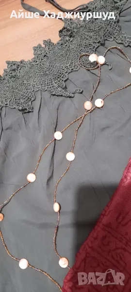 Дамски топ с регулируеми презрамки, тютюнев цвят,размер S/M,материя-100%вискоза,дълъг гердан и мек шал в керемидено кафяво.Цена на целия лот-15 лв.