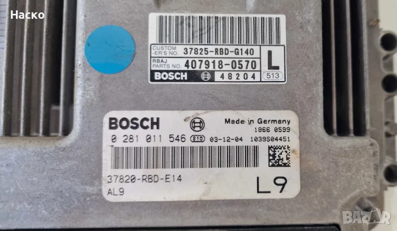 Компютър ЕКУ ECU Хонда Акорд 7 VII 2.2 140 к.с. Honda Accord 7 VII 2.2 140 hp i-CTDi 0 281 011 546 → Обява 47426758