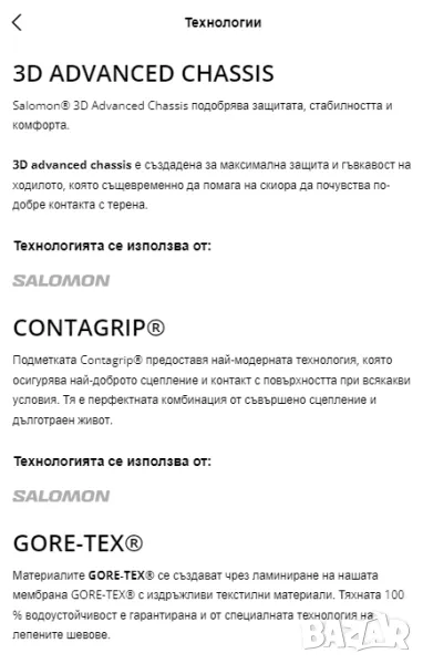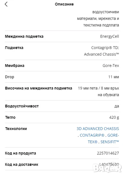 Advanced Chassis™ - в зоната между подметката и междинната подметка на обувките се намира специален олекотен слой, който осигурява максимален контрол над движението и икономия на енергия. Освен това, поради натиска над защитния слой, гарантира висока ефективност и стабилно отблъскване с оптимална чувствителносттехнологията GORE-TEX® поддържа ходилото сухо както отвън, така и отвътре