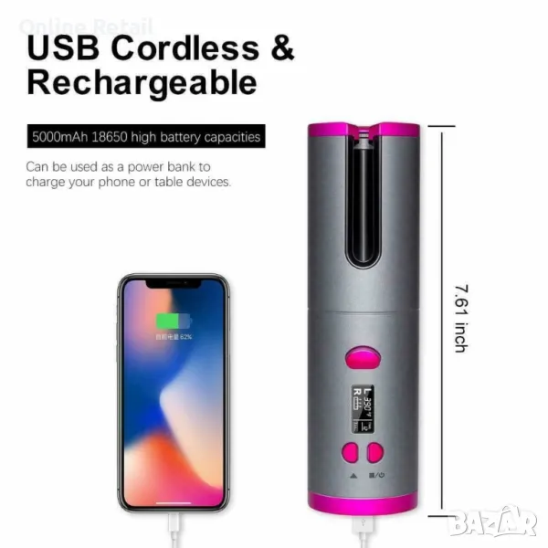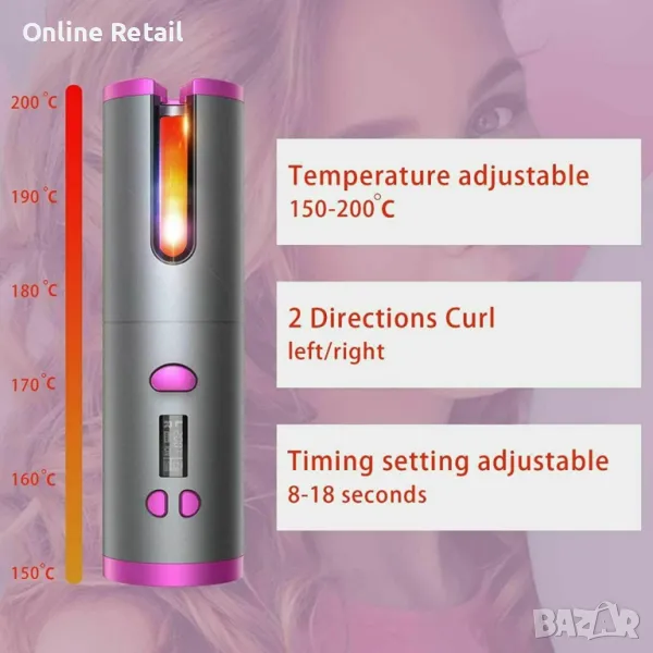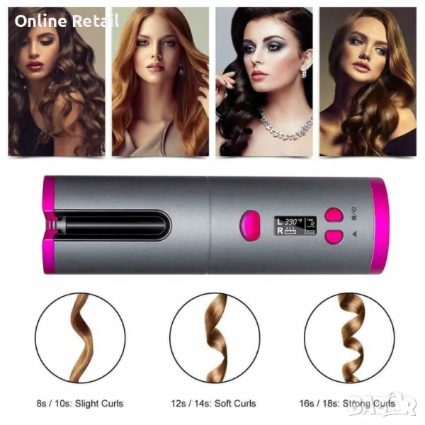 Маша за коса Безжична автоматично въртяща се за вълнообразни къдрици. → Обява 47426916