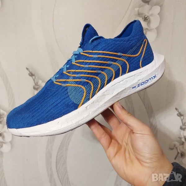 - ПО-ОТКЛЮЧИТЕЛНО ПОЗИРАНЕ: Пяната на Nike ZoomX е отзивчива и лека, което ви осигурява отскачане при всяка стъпка. Оформена като рокер, пяната осигурява подкрепа за 3-те фази на крачката на бегача. Предлага гъвкавост, когато кракът ви се повдигне от земята, плавно каране, когато кракът ви се движи, и осигурява омекотяване при контакт със земята.