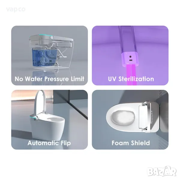 Мултифункционална смарт тоалетна с биде, подгрев, сушене, масаж
