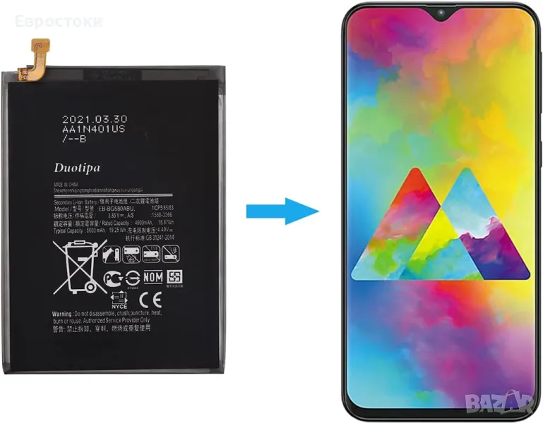 Galaxy M20 M205 M205F. Моля, проверете номера на старата си батерия, преди да купите тази батерия.
