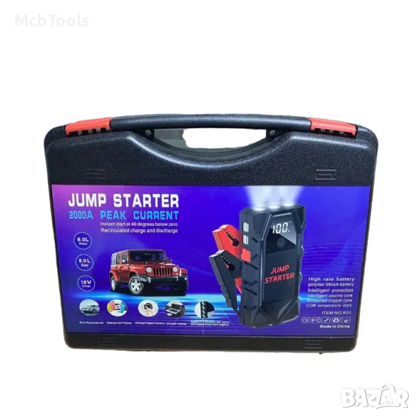 Мултифункционален автомобилен стартер Jump Starter 18000mAh, 12V, Максимален ток 2000A с компресор