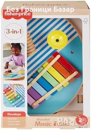 Нова Дървена музикална маса Fisher-Price с перкусионни инструменти деца 2+