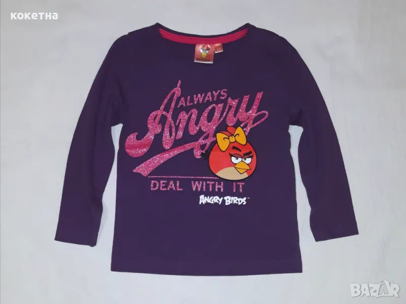 На 6 снимка блузка Angry Birds по етикет за 4г. Дължина 38см, широчина на ръкава 34см. Цена 4лв.