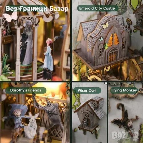Вълшебен свят на миниатюри: Прецизно пресъздаден декор от „Магьосникът от Оз“, с Дороти, Плашилото, Лъва и други герои.