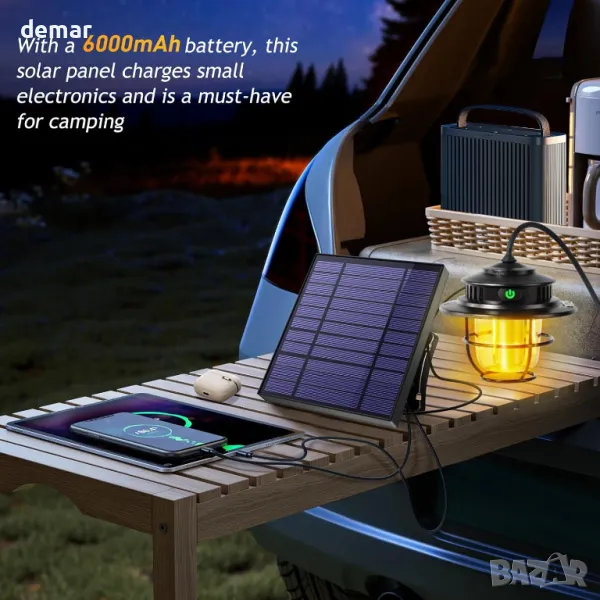 XRDZYXGS Лампа за къмпинг, акумулаторна 2000mAh 1000LM, водоустойчива с 6000mAh соларен панел