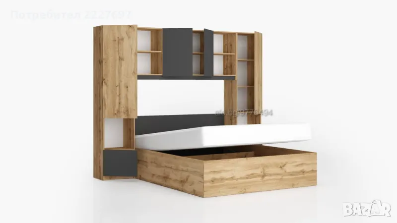 Спалня с надстройка Лора 160/200 см, Повдигащ механизъм, Плавно затваряне, Дъб вотан/Антрацит, снимка 1 - Спални и легла - 47433100 Спалня с надстройка Лора 160/200 см, Повдигащ механизъм, Плавно затваряне, Дъб вотан/Антрацит, снимка 2 - Спални и легла - 47433100 Спалня с надстройка Лора 160/200 см, Повдигащ механизъм, Плавно затваряне, Дъб вотан/Антрацит, снимка 3 - Спални и легла - 47433100 Спалня с надстройка Лора 160/200 см, Повдигащ механизъм, Плавно затваряне, Дъб вотан/Антрацит, снимка 4 - Спални и легла - 47433100 1/4