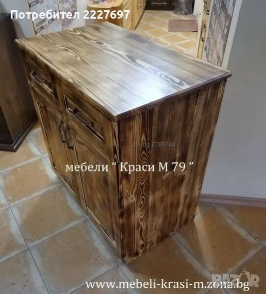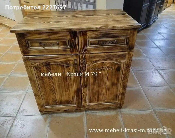 Ръчно обгорен сервитьорски скрин от масивен бор → Обява 47433627