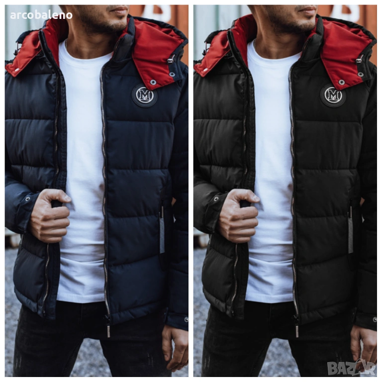 Мъжко зимно ватирано яке с качулка, 2цвята