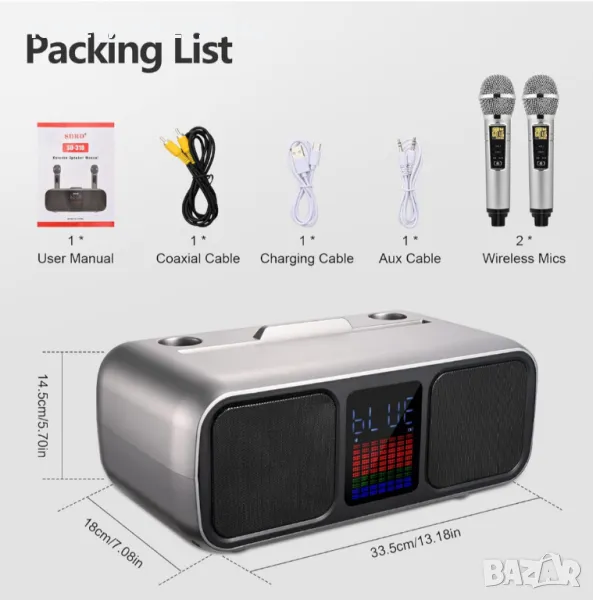 Караоке тонколона с 2 микрофона Bluetooth система акумулаторни