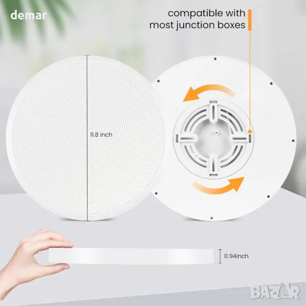 Тази таванна лампа разполага с призматичен панел, който значително подобрява дифузията на светлината, хвърляйки светлина върху по-големи площи без отблясъци или загуба на лумени. Неговият нископрофилен дизайн, с дебелина само 2,39 см, позволява вграден монтаж близо до тавана, което го прави идеален за пространства с ниски тавани. Предлага се в три опции за цветова температура (3000K, 4000K и 6000K), той доставя до 24W светлина, еквивалентна на 100W флуоресцентна лампа, можете също да изберете цветовата температура по време на инсталирането, за да се адаптирате към различната среда. Инсталацията е проста и удобна за потребителя, подходяща за хора с минимален опит.