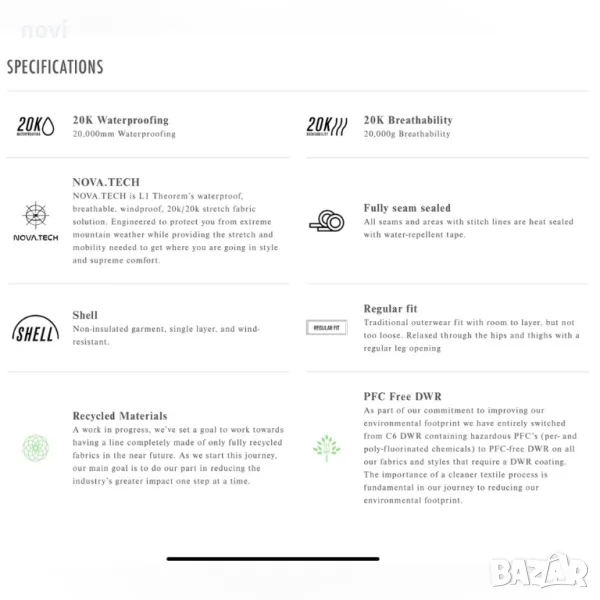‣ паропропускливост (дишане): 20 000 g/m2 / 24ч