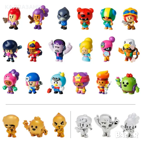 Пресъздай страхотните приключения на любимите си герои от хитовата игра BRAWL STARS. Събери цялата колекция от 24 героя! Фигурките са с тематичен дизайн от играта.