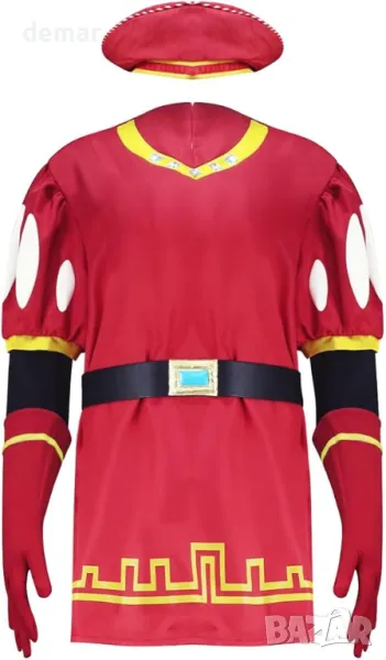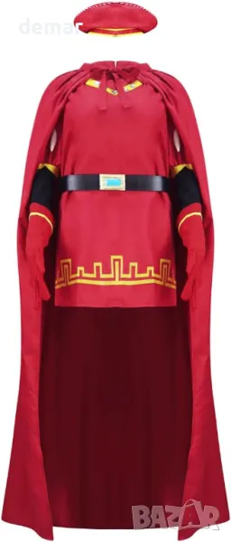 Този мъжки костюм за косплей Farquaad за възрастни включва червена пелерина, горнище, шапка, ръкавици и колан, изработени от висококачествен, лек полиестер за комфорт и дишане. Живият червен цвят и уникалният дизайн гарантират, че ще изпъкнете на събития като Хелоуин, косплей, карнавали, Коледа, сценични представления и тематични партита. Предлага се в размер XXL, препоръчително е да проверите таблицата с размери преди покупка.