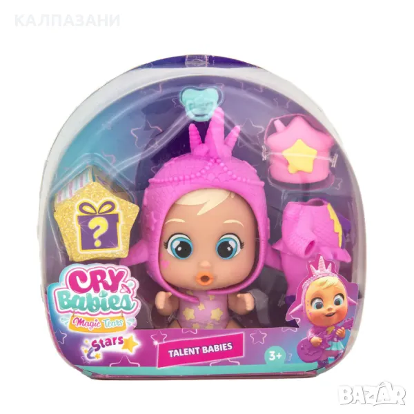 Приготви се да пътуваш през космоса и кажеш здравей на изцяло новите Cry Babies Magic Tears Stars Talent Babies. Сега с изцяло прозрачни опаковки избери любимата си героиня! Отвори блистера, за да разкриеш своята кукла и 6+ изненади и аксесоари. И разбира се, като всичките ти любими кукли Cry Babies Magic Tears, тя плаче истински сълзи, когато я нахраниш с вода с нейната бебешка бутилка. Сега твоите любими герои идват с нова фигура с повече подвижни точки, за да покажат талантите си!