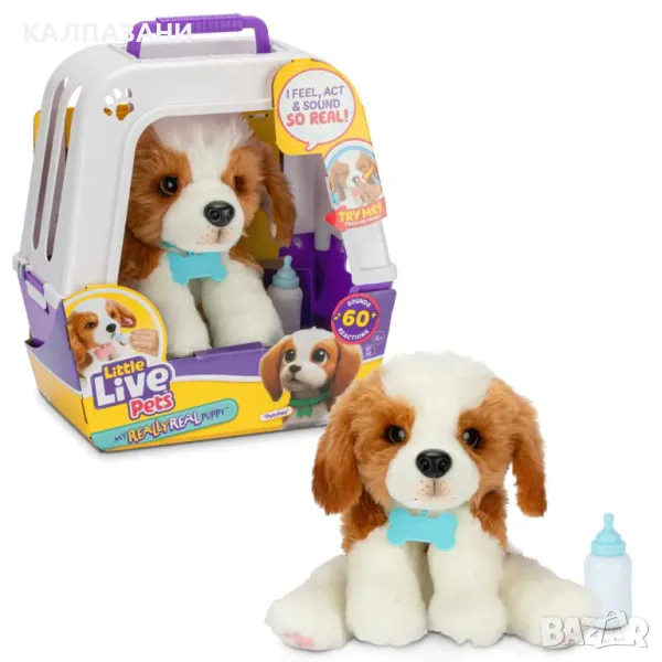 Little Live Pets My Really Real Puppy - Patches бигълът е най-истинското кученце, което някога си виждал! Patches изглежда толкова истински с най-меката козинка, най-сладко мигащите очи и реагира на докосването ти с над 60 звука и реакции.