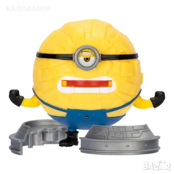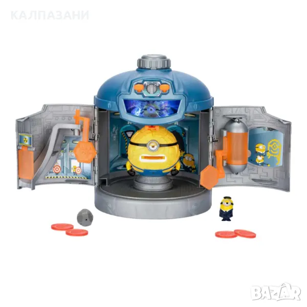 Пресъздай една от най-запомнящите се сцени от филма Despicable Me 4 с мега камерата за трансформации! Този невероятен комплект ти позволява да трансформираш Джери в мега миньон! Зареди фигурата на AVL Джери, голяма 5,8 см., в горния люк на камерата. Включи камерата, като завъртиш копчето на "Пълна мощност", след това я активирай, като дръпнеш надолу лоста. Отвори я, за да разкриеш мега миньона Джери! Мега Джери е висок 10 см. Мега минионът Джери е ексклузивен за този специален комплект и може да стреля дискове от устата си! Камерата се отваря, за да се трансформира в център за обучение на AVL с набор от забавни екшън функции. Помогни на AVL Джери да избяга през люкя за бягство. Внимавай за падащите камъни!