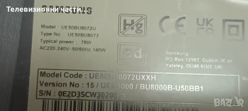 Samsung UE50BU8072U със счупен екран CY-SB050HGCY1V/BN44-01110F/BN41-02990B BN94-17381Z/S1A8-500SM0
