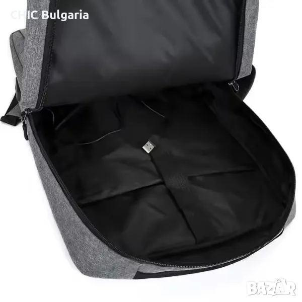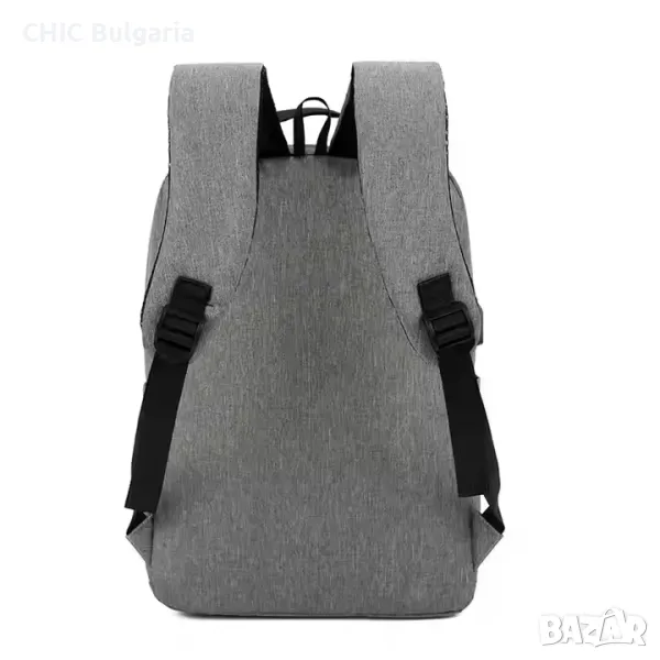 Голяма раница с USB порт – сив цвят, просторна и функционална + подарък шал - ЗИМНА ПРОМОЦИЯ