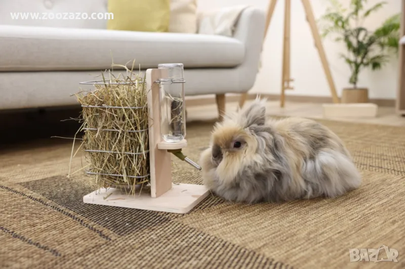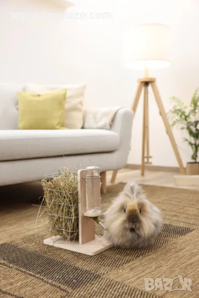 Дървена стойка с поилка и хранилка за сено за Гризачи, 22.5 х 15.5 х 27 см. - Модел: 81832