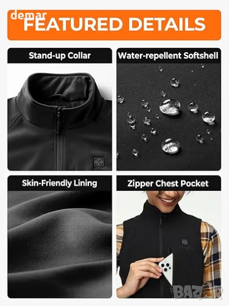 ORORO Дамска отопляема софтшел жилетка с Power Bank, черна, размер М