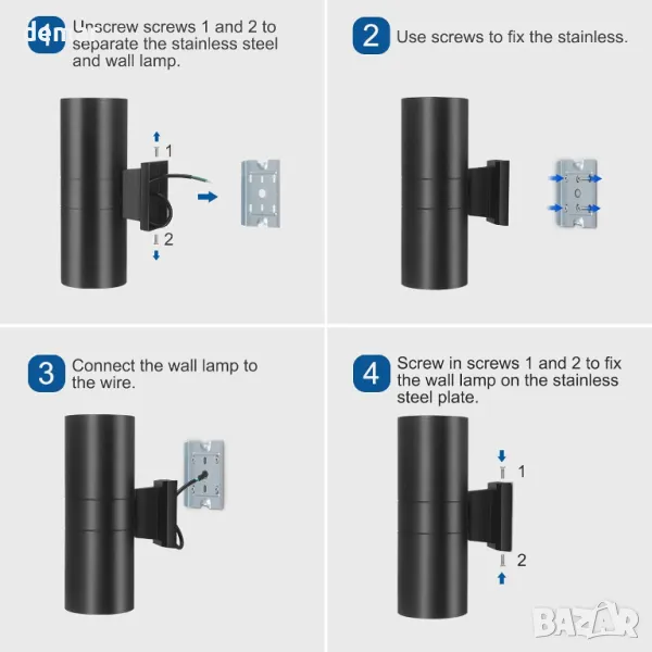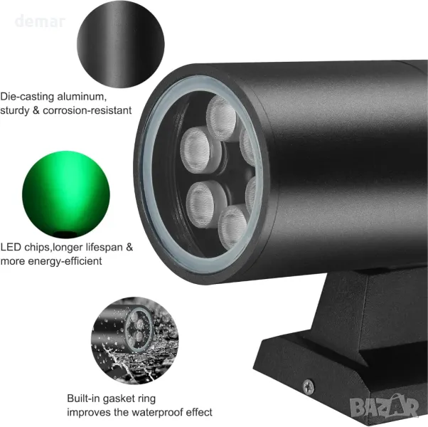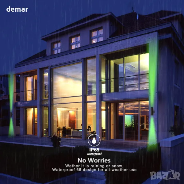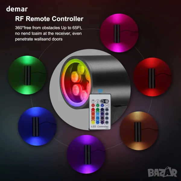 Yasotek Up and Down Външна стенна LED лампа, RGBW водоустойчива, дистанционно, 48W сменяща цвета