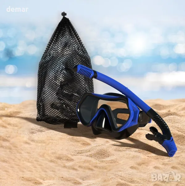 Професионален комплект екипировка за гмуркане против мъгла, панорамен изглед, сух шнорхел JRing, син