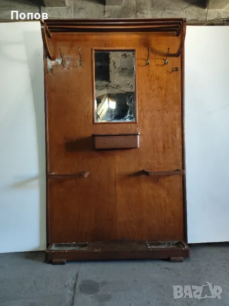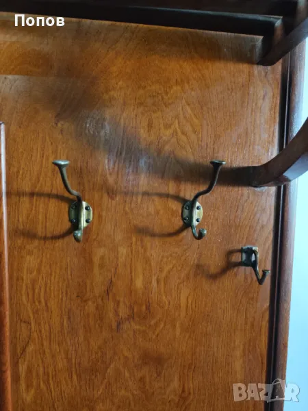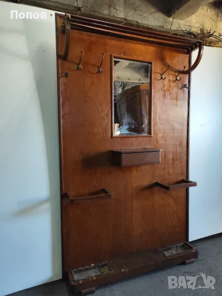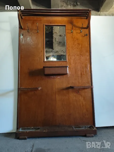 Старинно портманто изцяло изработена от масив с месингови закачалки и медни тавички за чадърите в много добро състояние само за ценители