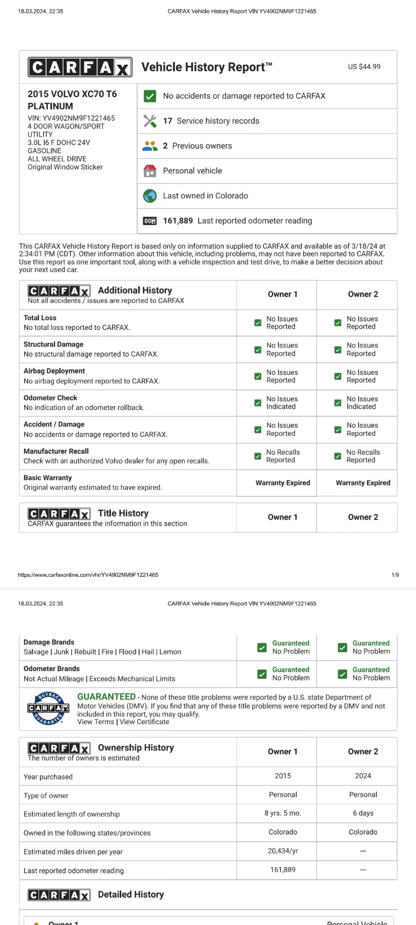 Volvo Xc70 Т6 AWD PLATINUM / LPG