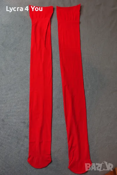 Червени дамски чорапи с дължина над коляното, за жартиери.