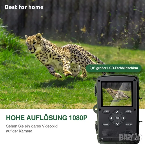 [Новата версия на камерата за диви животни на HAZA] - Има ултра висока резолюция, която предоставя зашеметяващи, ярки видео изображения. С вградения 2,0-инчов LCD цветен екран можете да научите повече за тайните на животните, независимо дали денем (цветно) или нощем (черно-бяло). Камерата може да се използва за наблюдение на дивеч, за обезопасяване на земи и къщи, както и за дистанционно наблюдение на земеделски земи и посеви.
