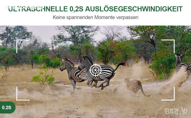 и технология за бързо зареждане. Независимо колко бърза е целта, незабавните сензори откриват бързо движещите се животни в рамките на 0,2 секунди. Камерата за диви животни HAZA не пропуска нито един вълнуващ момент.