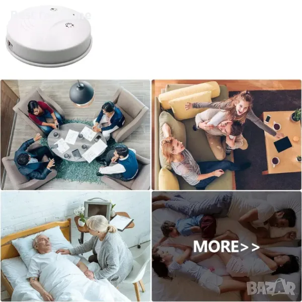 Въпреки че в действителност не работи като детектор за дим, той включва всички визуални характеристики на такъв, като ви дава познатия вид на детектор за дим, но със съществена разлика. Вместо да разпознава димни частици, това устройство е специализирано в заснемането на изображения и ясни видеозаписи на средата, в която е инсталирано. То осигурява несравнимо наблюдение и внимание към безопасността на вашия дом или търговско помещение.