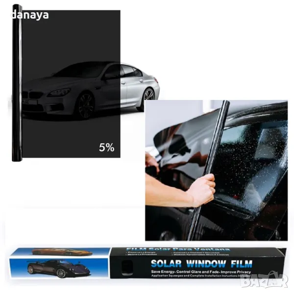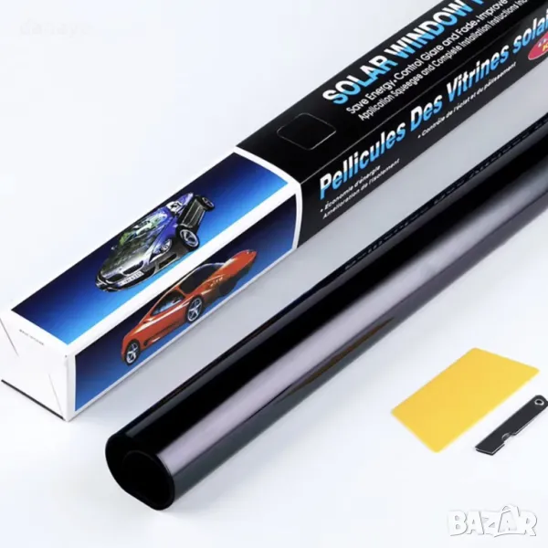Фолио за затъмняване на автомобилни стъкла. Подходящо е за затъмняване на стъклата на автомобила или на прозорците в дома. Комплектът съдържа шпатула и макетен нож, необходими за монтажа на фолиото.