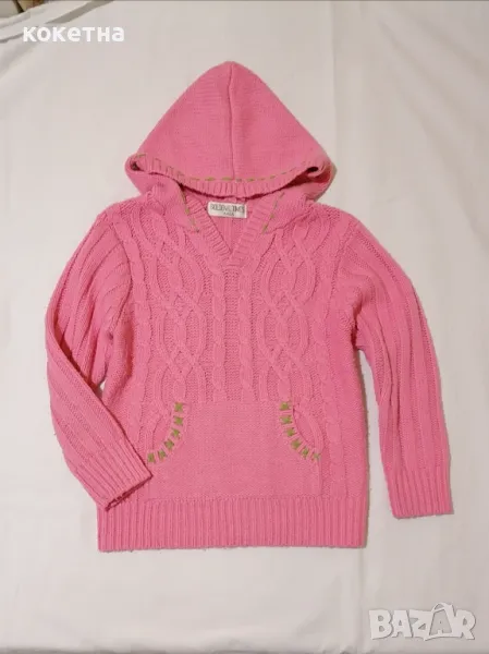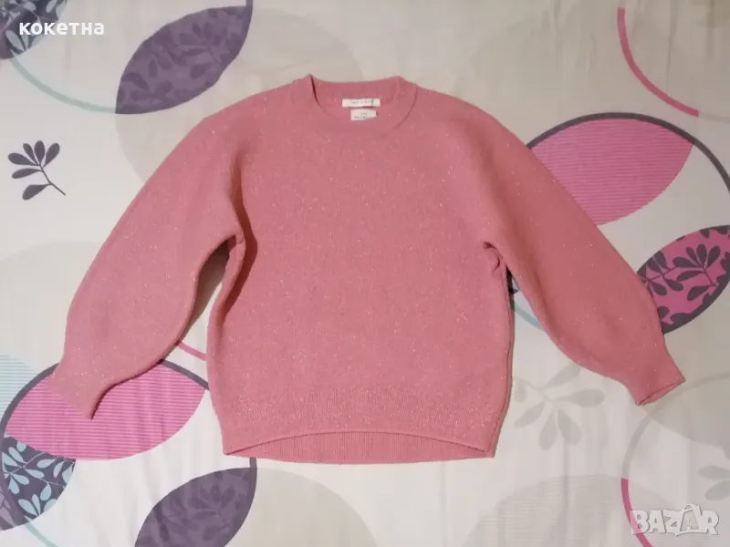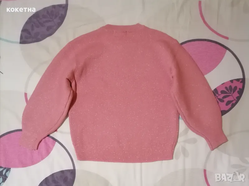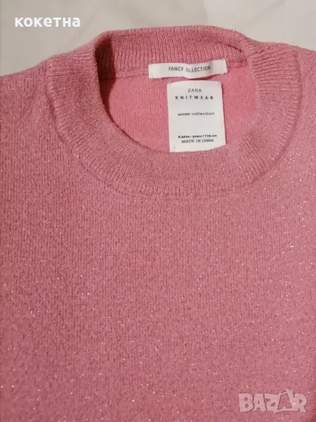 На 3, 4 и 5 снимка розов пуловер ZARA по етикет за 6г р.116. Дължина 43см, широчина 38см, дължина на ръкава от вратната извивка 49см. Цена 10лв.
