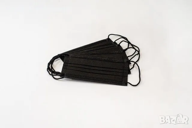 Кутия маски 50 броя за еднократна употреба, Трислойни, С пластина за носа, Черни