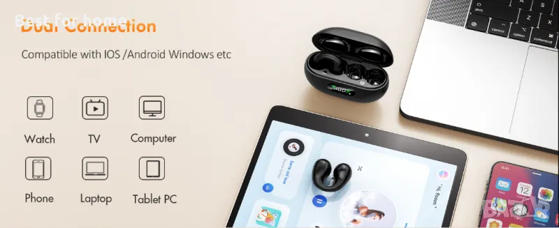 [Истински слушалки с отворено ухо] Безжичните слушалки имат напълно отворен дизайн, накрайниците могат да бъдат внимателно и стабилно поставени в горната част на ухото. Слушалките с отворено ухо обикновено са по-леки и по-дишащи от слушалките за поставяне в ушите, което ги прави по-удобни за носене за продължителни периоди от време.