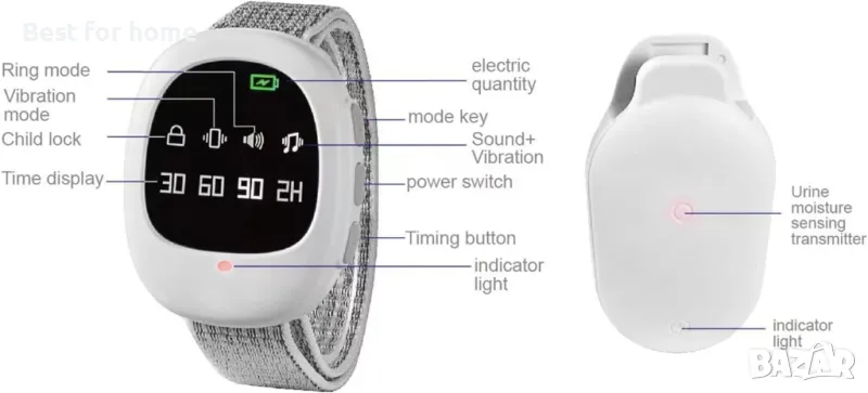 Аларма за напикаване с часовник 3 режима BC062