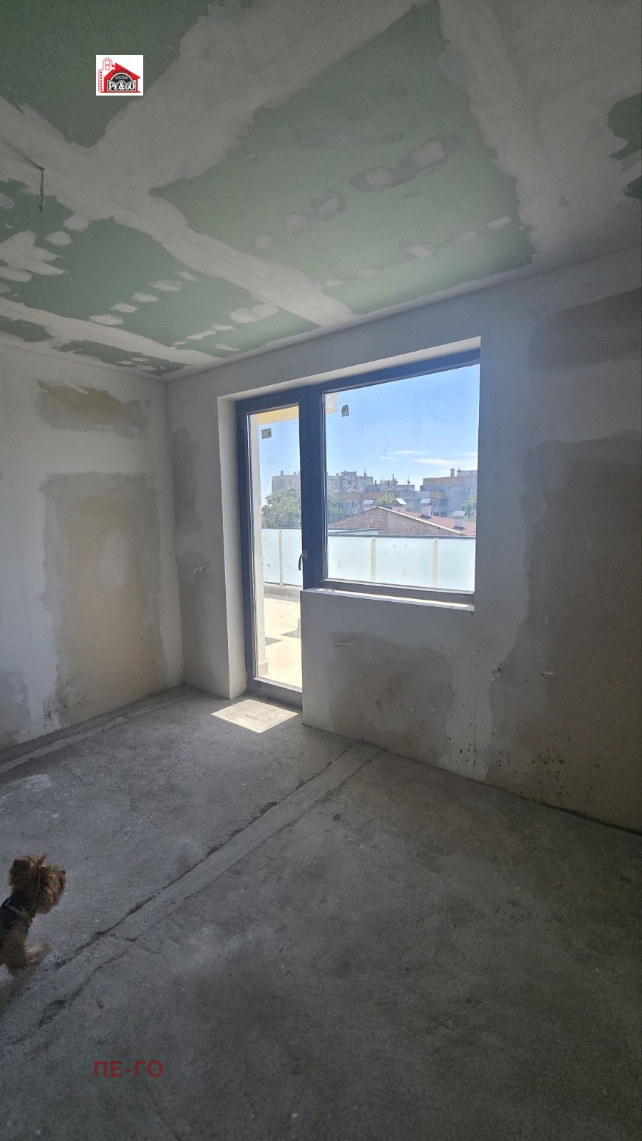 Кантора за недвижими имоти ПЕ -ГО,продава панорамен тристаен апартамент в новa сграда с АКТ 16.Апартамента се намира на четвърти последен и е единствен на етажа.Разпределението е следното :хол с кухненски кът и трапезария в едно помещение, две спални,баня с тоалетна,просторна тераса обхождаща апартамента.Към жилището има и склад на партерния етаж.За повече информация Надя Пандезова -0898594817