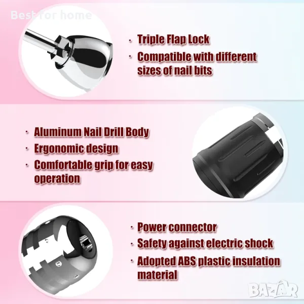 Тиха, хладна работа без вибрации: Насладете се на удобна и приятна сесия за грижа за ноктите с нисък шум, минимална топлина и намалена вибрация, гарантираща по-гладко потребителско изживяване