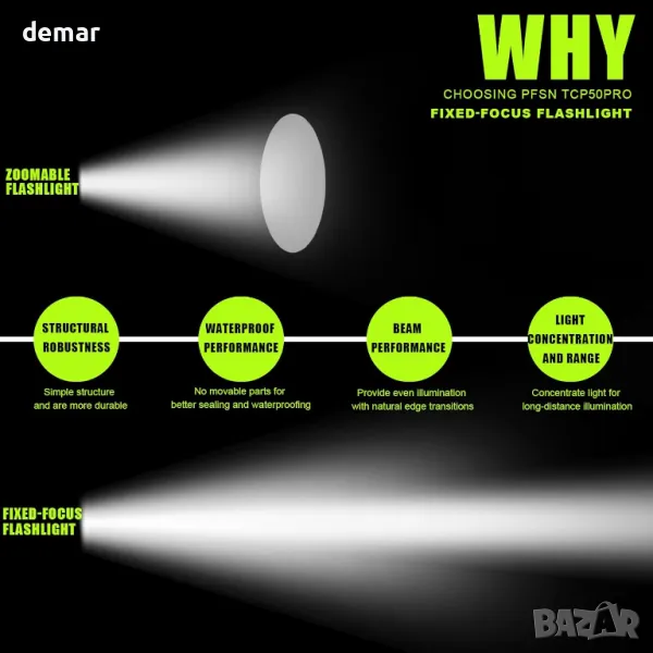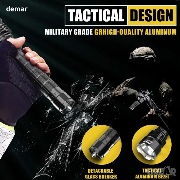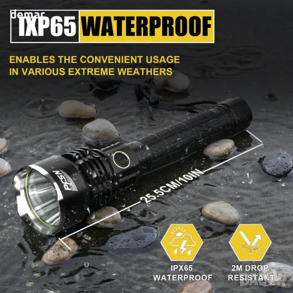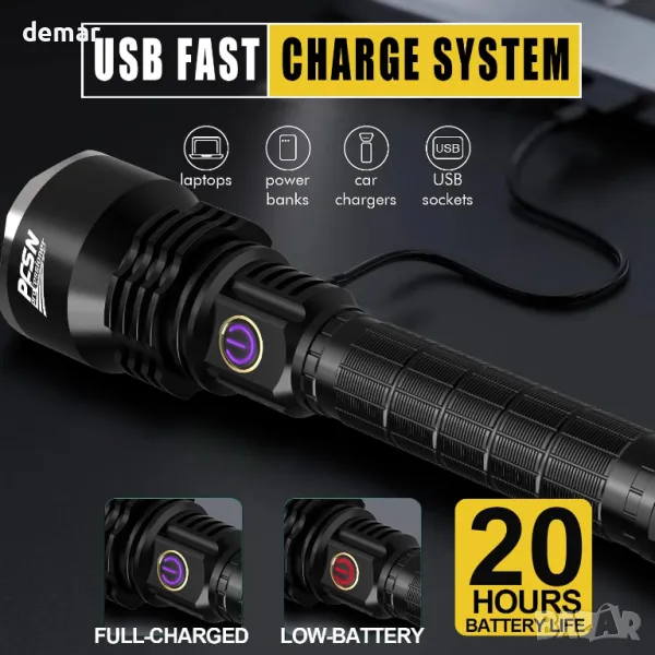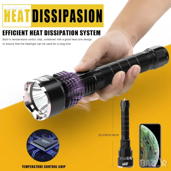 PFSN фенер LED супер ярък - 6000 лумена USB C акумулаторно фенерче с 400M дълъг лъч, водоустойчив