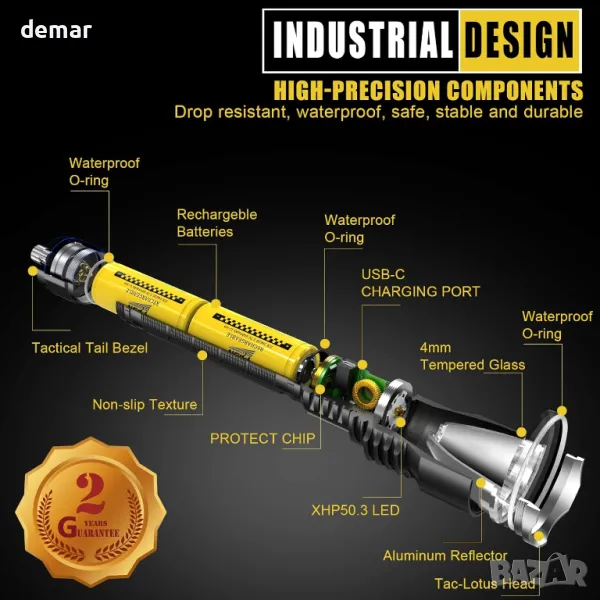 Мощното фенерче TCP50Pro осигурява впечатляващите 6000 лумена, осветяващи зони до 400 метра, идеални за дейности на открито и спешни случаи. Проектиран с тактически заден панел за допълнителна полезност, този фенер е идеален за правоприлагане и приключения на открито. Той разполага с USB-C порт за зареждане, който осигурява 2 пъти по-бързо зареждане и предлага до 20 часа работа при най-ниската настройка, осигурявайки надеждна светлина, когато е необходимо. С три режима на яркост - TURBO (6000LM), HIGH (2000LM) и LOW - потребителите могат лесно да коригират настройките, за да отговарят на техните нужди, като същевременно пестят батерията. Всяка покупка включва ръчно фенерче TCP50, две акумулаторни батерии с голям капацитет и USB кабел.