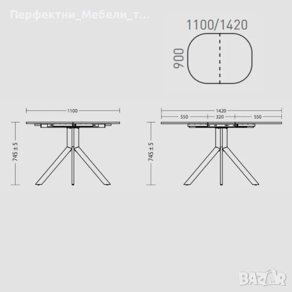 Разтегателна елипса 110 до 140 см.компактна икономична трапезна маса с избор на плот по поръчка