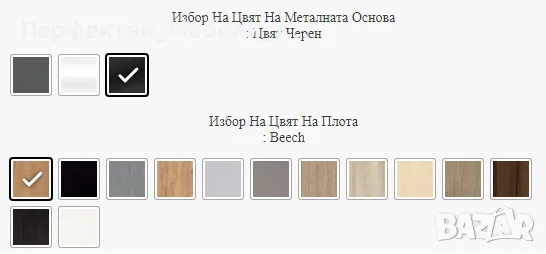 Метална основа с цвят по избор – бял, черен или антрацит.