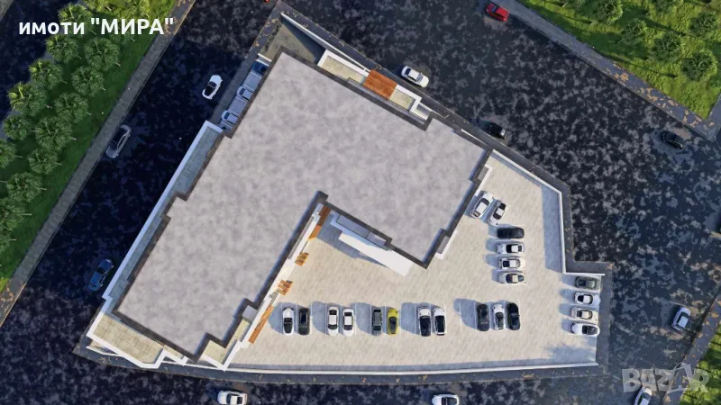 паркомясто, гаражи/паркоместа на подземно ниво . Сградата е проектирана с два