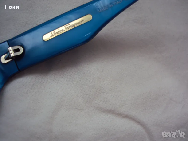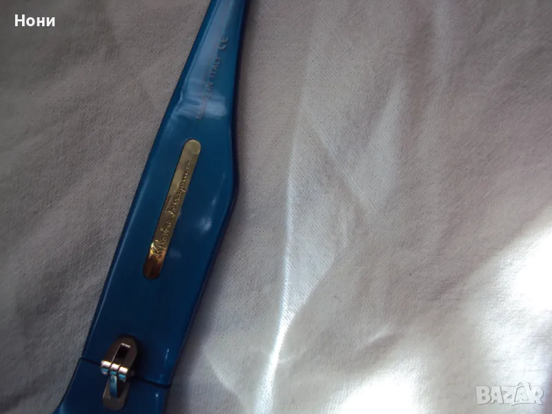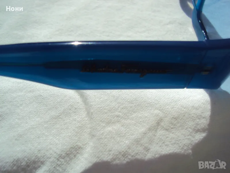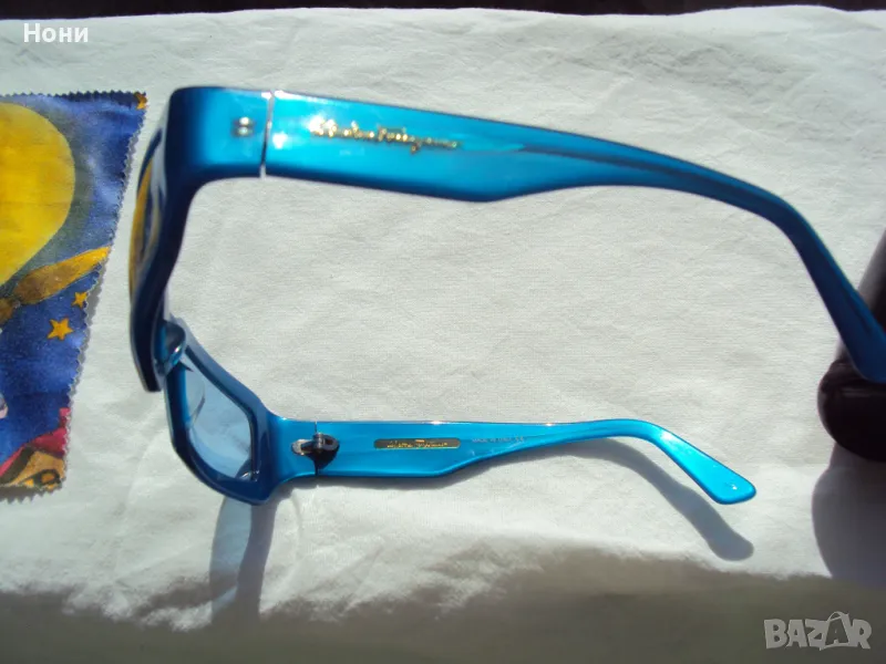 Дамски слънчеви очила Salvatore Ferragamo 2027 216 6550022 125. Купени от Италия. Единствената забележка е на последната снимка. Три леки резки, които остават отвътре и не се забелязват при носене. Сини рамки. Сини стъкла. Лимитирана серия! Слагани до пъти!