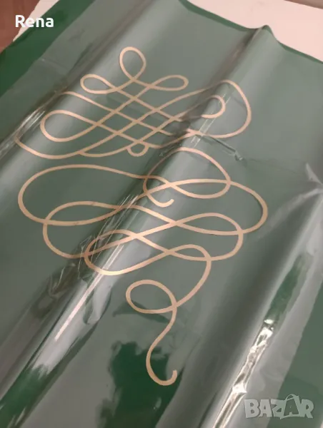 Прозрачен целофан на листи с червена и златна шарка. Цената е 0.06 лв за един лист.