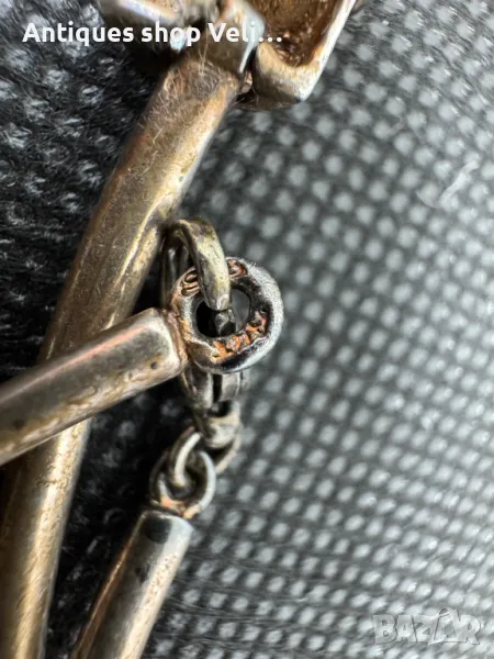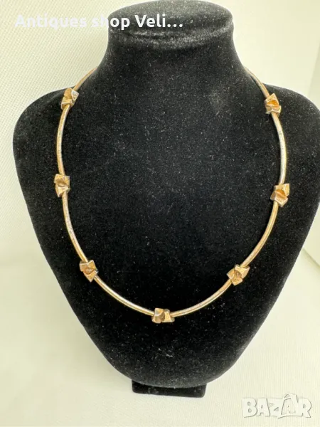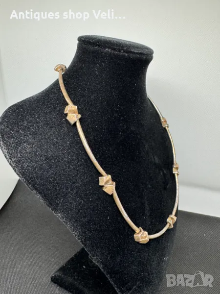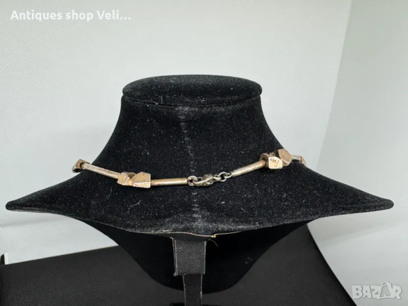 Стилно и нестандартно авторско сребърно колие в винтидж стил с прекрасна патина проба 925. Добро състояние. Предлагаме доставка с Еконт и лично предаване за градовете Велико Търново, Русе и Сливен.
